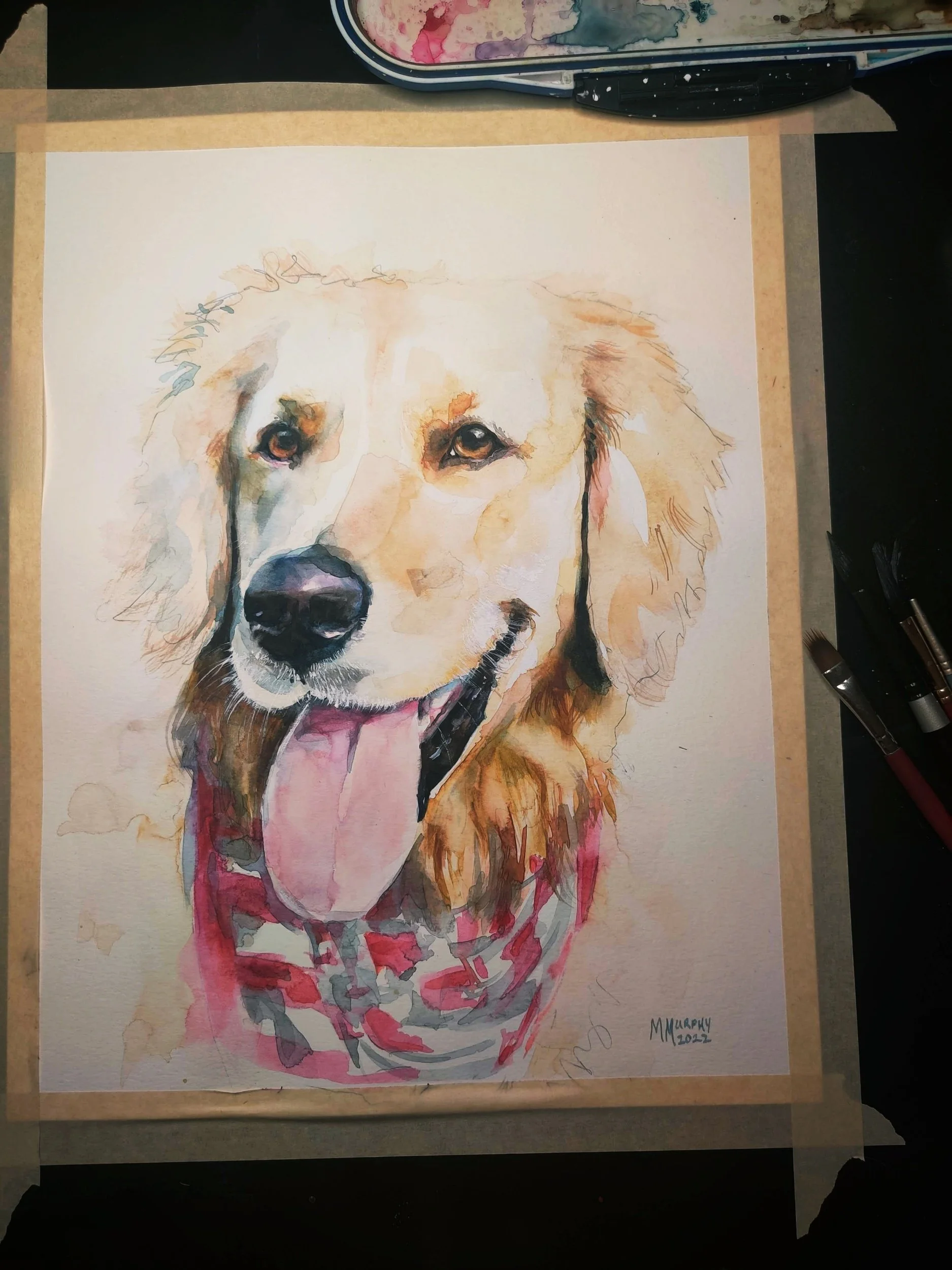 • 11" × 14" original watercolor portrait (one pet): $147 + tax ($155.82 total).